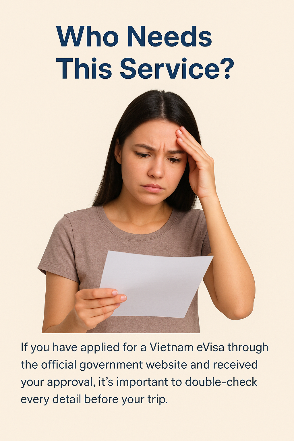 Even a small mistake can cause serious issues at immigration and may prevent you from boarding your flight or entering Vietnam. That’s where our Vietnam eVisa fixing service comes in.
