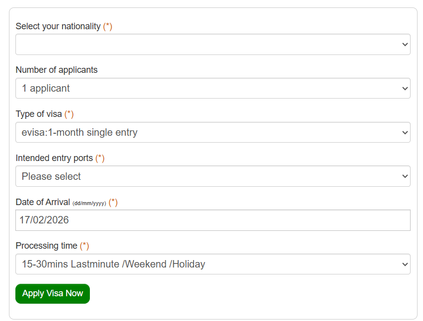 - Click the button above, complete the form with your personal information, and then select the visa type “E-visa – 1 Month Single Entry”